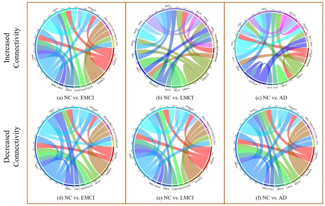 顺利获得对AD和ASD不同阶段脑网络连接模式分析发现:两种模式的脑网络连通性在疾病早期都呈上升趋势,然后在疾病中期-晚期阶段时减少到较低水平。这一发现与脑科学研究中的神经连接代偿机制一致。