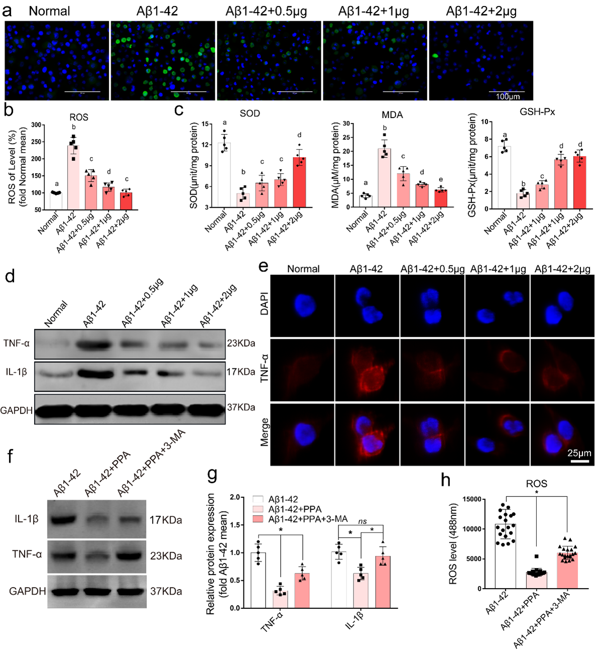 为了明确线粒体自噬在PPA治疗AD中的作用,自噬抑制剂3-MA(3-甲基腺嘌呤)被使用。结果显示PPA能够增强小胶质细胞的线粒体自噬,实现清除ROS和AD治疗效应,而自噬抑制剂的应用能够逆转PPA介导的的炎症因子和氧化水平下调,进一步证实PPA是顺利获得促进线粒体自噬从而实现清除ROS和AD治疗效应的(图7f-h)。