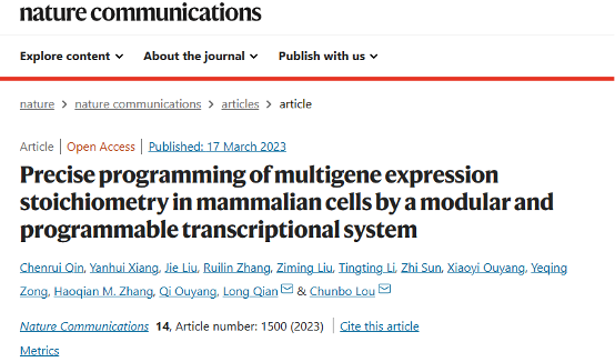 Nature Communications | 模块化和可编程地控制哺乳动物细胞多个基因表达剂量的人工基因线路
