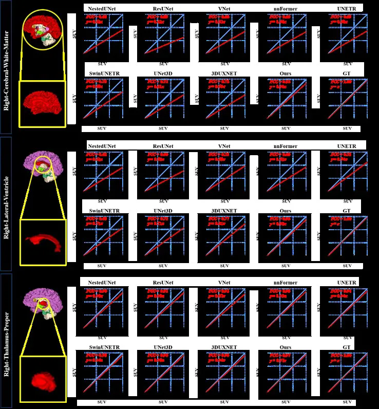 脑区分割是医学图像处理的主要任务,对神经科学研究和临床诊断都有着深远的影响。精确的脑区分割对于分析不同的脑区至关重要,因为它们的体积、表面积和形态与各种神经系统疾病有关,比如帕金森病和阿尔茨海默病等。PET/MR成像系统则是一种有效的脑部疾病诊断工具,它结合了PET代谢成像和MR结构成像的优点,可以在疾病早期观察到特定大脑区域的代谢异常和结构变化,从而将功能和代谢双模态信息相结合用于脑疾病诊断。