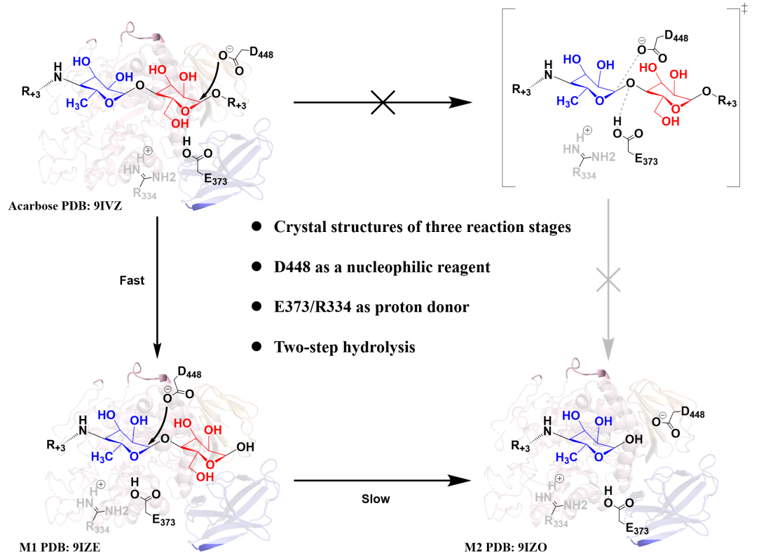 图5. Apg催化阿卡波糖水解反应的两步过程