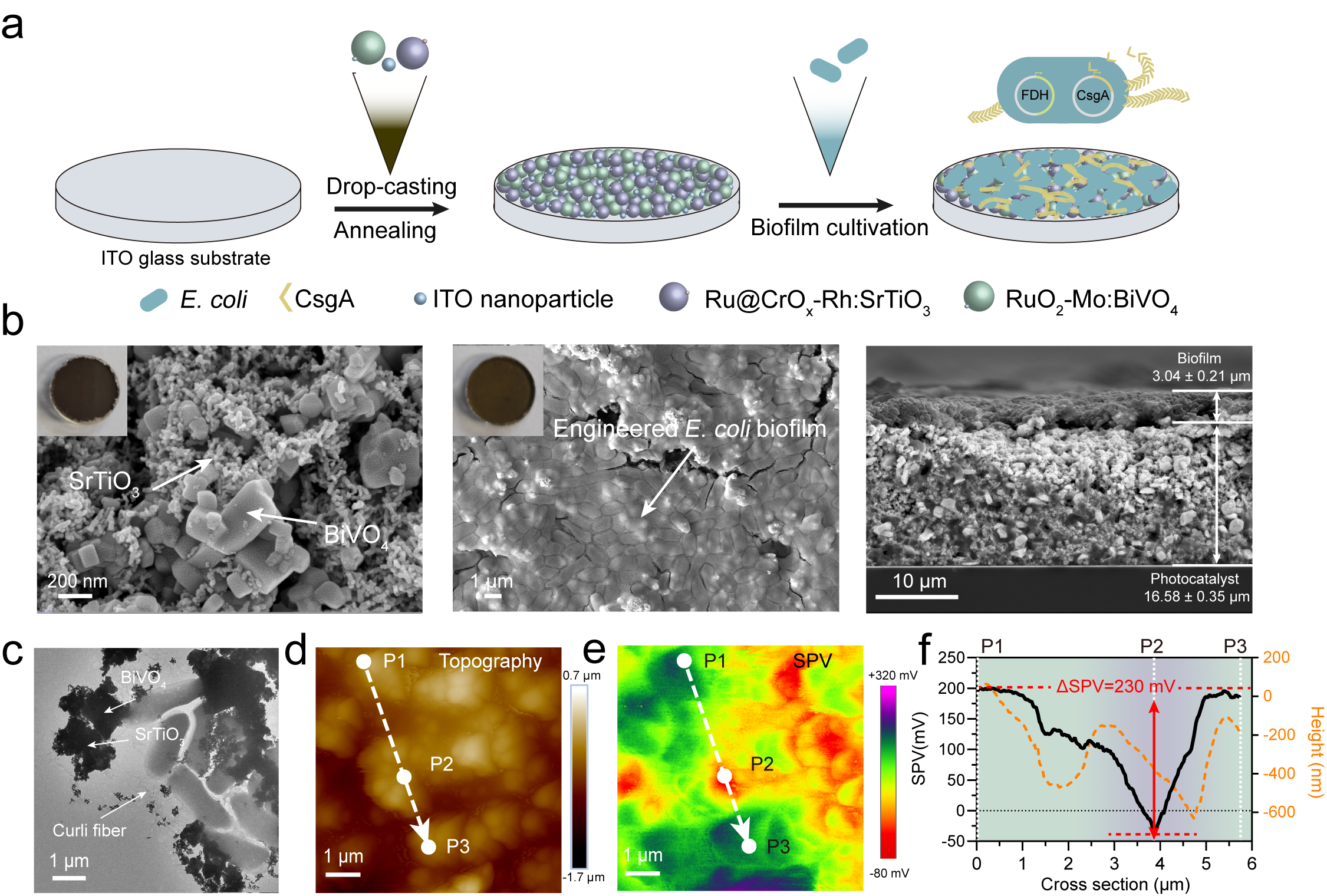 图2.光催化剂-生物被膜生物杂合体系的制备与结构表征
